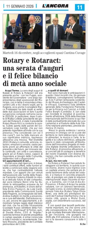11 gennaio – L’Ancora – Rotary Rotaract Acqui Terme Serata di auguri e felice bilancio di metà anno sociale
