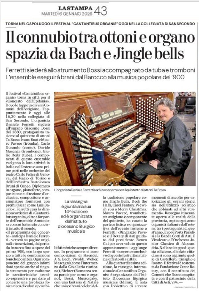 6 gennaio – La Stampa edizione Asti – Il connubio tra organo e ottoni spazia da Bach a Jingle Bells