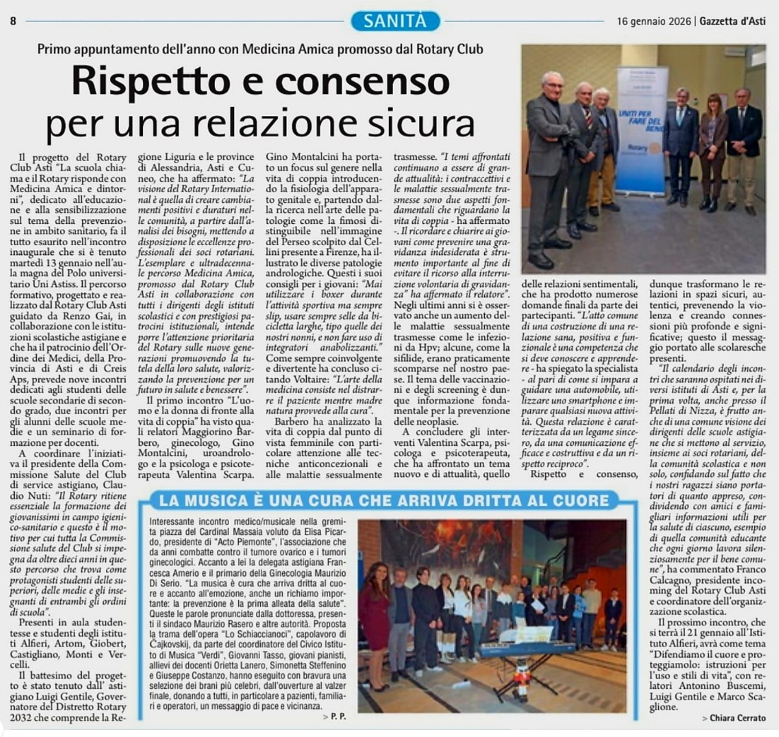 16 gennaio – Gazzetta d’Asti – Rotary Asti Medicina Amica Rispetto e consenso per una relazione sicura