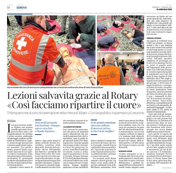 11 gennaio – Il Secolo XIX – Rotary Genova San Giorgio Lezioni salvavita