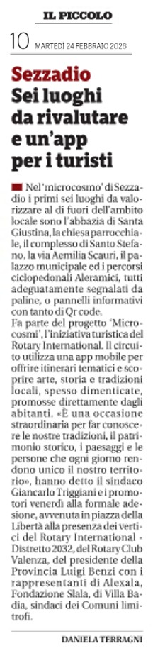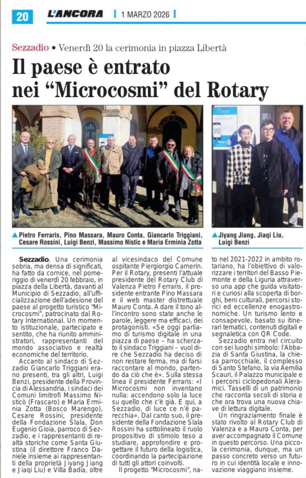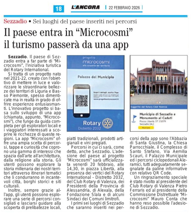 18 febbraio – acquinews.ilpiccolo.net – Sezzadio entra in “Microcosmi”: cultura e identità nel circuito Rotary International