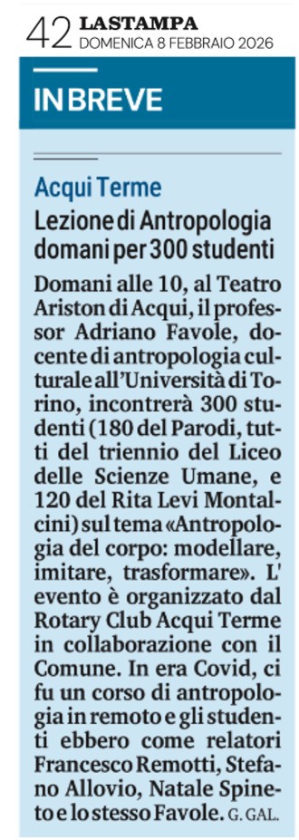 8 febbraio – La Stampa – Rotary Acqui Terme Lezione di antropologia domani per 300 studenti