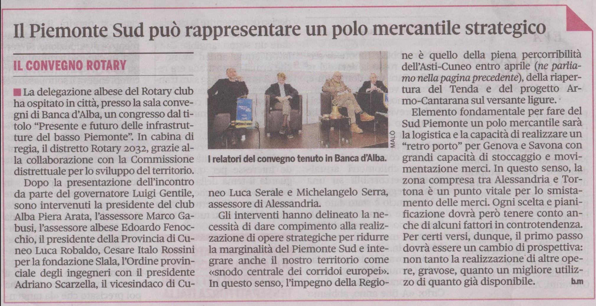 9 febbraio – lavocedalba.it – Il Rotary Distretto 2032 porta ad Alba il convegno “Presente e Futuro delle Infrastrutture”
