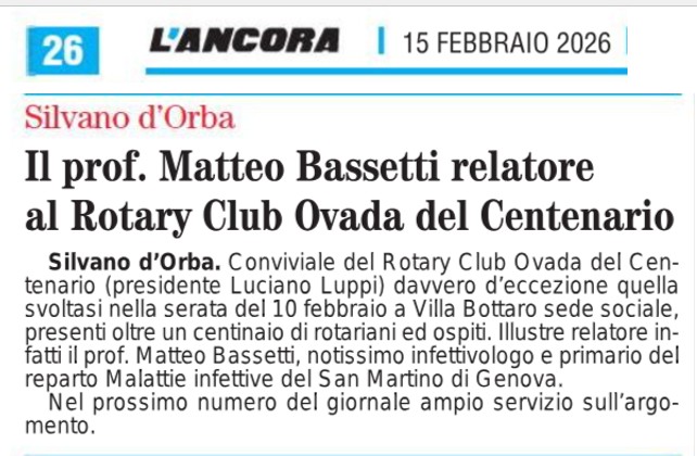 12 febbraio – settimanalelancora.it – Il prof. Bassetti relatore al Rotary Club Ovada del Centenario